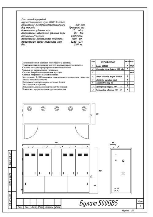 Габариты котла позволяют разместить в моноблоке все основное оборудование равнозначное небольшой котельной.
